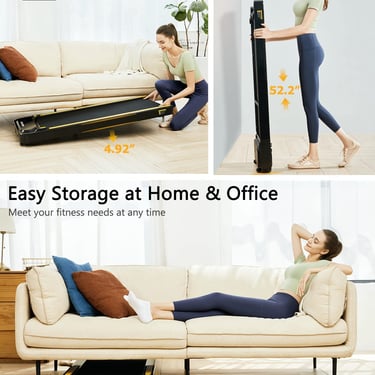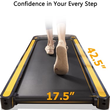”I was able to increase my miles from 5 to 30 per week effortlessly. During work hours while listening to meetings you really can get in the miles. The device is easy to use, you can get up to a speed of 3.8 - almost a slow run - almost. I just keep it at a 2.0 and I can safely navigate my computer and work effectively. This is. game changer for my health, as sitting in a chair for 8hours a day was killing me slowly. JUST DO IT! Buy it..”